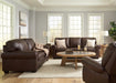 | Details | 5210738: Corner-blocked frame, Attached back and loose seat cushions, High-quality foam cushions wrapped in poly fiber, 100% top grain leather covers inside areas such as the back, seat and arm cushions; skillfully matched faux leather covers the remaining areas, Due to its natural origin, real leather can show individual characteristics such as healed scars, growth marks, grain variation and shade variation, Natural variations make each hide unique and do not detract from the wearing qualities of leather, Pigmented corrected grain leather with slight embossing and a light contrast spray effect to add more depth, Exposed feet with faux wood finish, Platform foundation system resists sagging 3x better than spring system after 20,000 testing cycles by providing more even support, Smooth platform foundation maintains tight, wrinkle-free look without dips or sags that can occur over time with sinuous spring foundations, 5210735: Corner-blocked frame, Attached back and loose seat cushions, High-quality foam cushions wrapped in poly fiber, 100% top grain leather covers inside areas such as the back, seat and arm cushions; skillfully matched faux leather covers the remaining areas, Due to its natural origin, real leather can show individual characteristics such as healed scars, growth marks, grain variation and shade variation, Natural variations make each hide unique and do not detract from the wearing qualities of leather, Pigmented corrected grain leather with slight embossing and a light contrast spray effect to add more depth, Exposed feet with faux wood finish, Platform foundation system resists sagging 3x better than spring system after 20,000 testing cycles by providing more even support, Smooth platform foundation maintains tight, wrinkle-free look without dips or sags that can occur over time with sinuous spring foundations, 5210725: One-pull reclining motion, Corner-blocked frame with metal reinforced seat, Attached back and seat cushions, High-quality foam cushions wrapped in poly fiber, 100% top grain leather covers inside areas such as the back, seat and arm cushions; skillfully matched faux leather covers the remaining areas, Due to its natural origin, real leather can show individual characteristics such as healed scars, growth marks, grain variation and shade variation, Natural variations make each hide unique and do not detract from the wearing qualities of leather, Pigmented corrected grain leather with slight embossing and a light contrast spray effect to add more depth, | |
