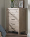 • Five-drawer chest with sculpted corners and softened lines for elegant bedroom storage