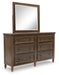 | Details | Includes dresser and mirror, Made with hardwood solids, veneers and MDF substrates, Brown finish, Oil-rubbed bronze-tone knobs, 6 drawers with fully finished interior, dovetail construction and heavy duty ball-bearing side glides (top drawers felt lined), Turned feet, Mirror attaches to back of dresser | |