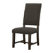 • Upholstered dining side chairs feature classic Parsons styling and armless design