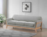 A seamless fusion of modern curves and vintage roots, this sofa lends refined presence to any space. Flared arms and a smooth, contoured backrest exude retro charm, while plush cushions offer an inviting retreat. A light-toned wood frame crafted from solid rubberwood surrounds the base in sculptural support. Upholstered in soft polyester fabric, this tailored sofa balances comfort and design for stylish lounging in living rooms or cozy nooks.