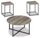 Details Includes round coffee table and 2 square end tables, Made of metal and engineered wood, Frame with dark metallic finish; top with decorative laminate wood grain finish, Assembly required