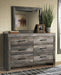 | Details | Includes dresser and mirror, Made of engineered wood (MDF/particleboard) and decorative laminate, Rustic gray planked replicated oak grain with authentic touch, Hooded pull hardware in dark finish, 6 smooth-gliding drawers, Mirror attaches to back of dresser, Safety is a top priority, clothing storage units are designed to meet the most current standard for stability, ASTM F 2057 (ASTM International), Drawers extend out to accommodate maximum access to drawer interior while maintaining safety, Assembly required | |